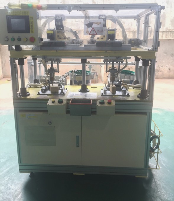 樹脂部品内に金属製のナットを圧入する設備となります。 作業員が樹脂部品をセットし、パーツフィーダーから供給されたナットを二軸アクチュエータを使用して樹脂部品の規定の位置に押し込んで固定します。 弊社では全自動設備はもちろんのこと、当設備のような半自動設備も製造しております。 お客様の業務の状況やご要望を考慮し、最適と思われる仕様をご提案いたします。